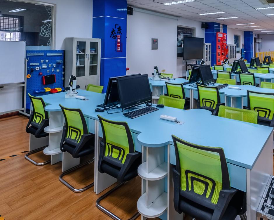 智能产线综合实训室于2018年9月建成,占地面积270平米,投资390余万元,配备了智能机器人、桌面机械臂、机器人实验箱、机器人本体实验平台、通用六轴机器人实训台、智能制造生产线等先进设备。