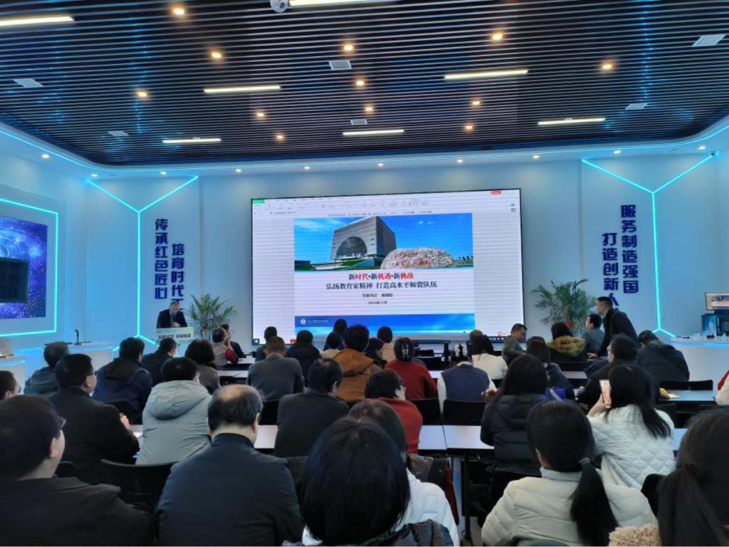 会上,侯涛书记从加强教师队伍建设的必要性、学校及机械学院师资队伍现状分析、教学成效不够显著的问题分析等方面解析了惠朝阳书记《弘扬教育家精神打造高水平师资队伍》的主题讲座;从“金专”建设的时代要求、基本内涵、现实思考、路径探索等角度解析了刘永亮校长《“新双高”背景下“金专”建设的思考》的主题讲座;并基于机械工程学院在校内的定位,从机械工程学院实际情况出发勉励机械工程学院全体教职工要加强内涵学习、提高教学质量。