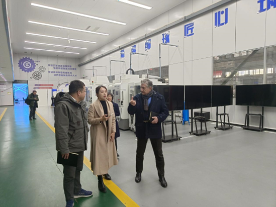 在访问过程中,费斯托公司总裁一行参观了陕西工业职业技术学院的智能制造协同创新中心、先进制造技术工程中心以及5G+智能成型实训基地。他们对学院在智能制造领域的先进设备和技术表示赞赏,并与学院的教师进行了亲切交流。