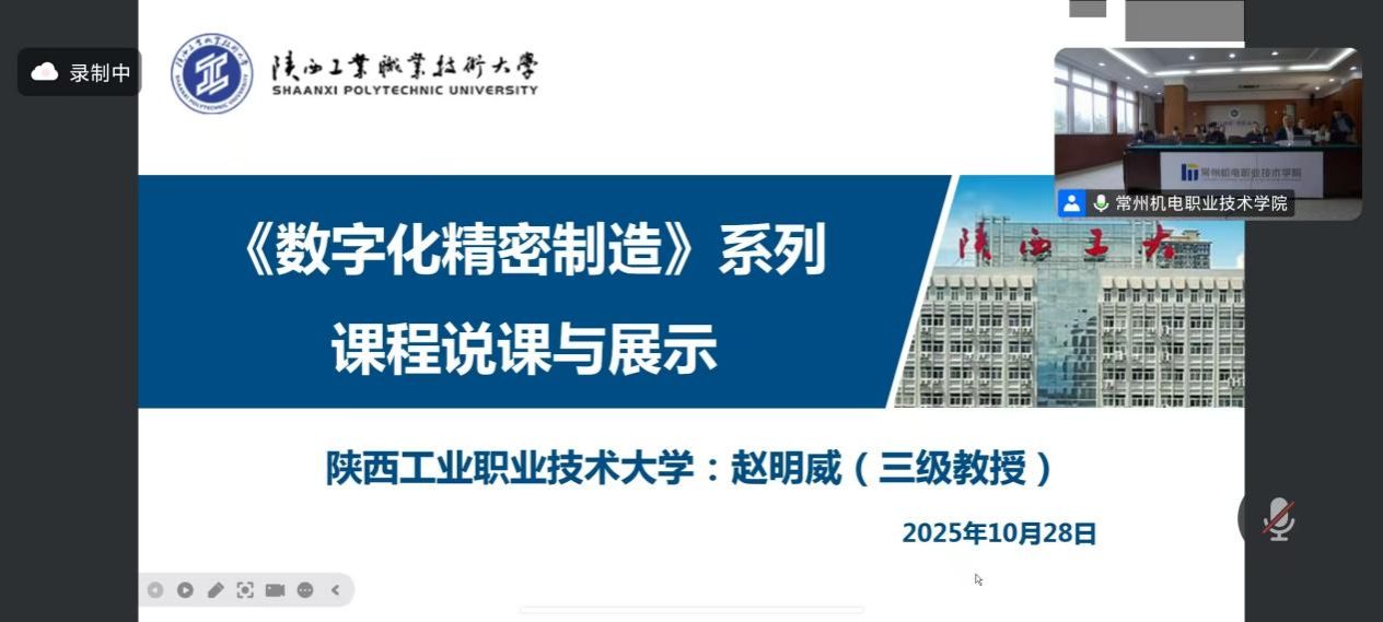 为推动职业教育装备制造大类课程思政建设,深化课程教材思政建设,深入学习领会党的二十大精神,贯彻落实全国教育大会精神,根据教育部职业教育与成人教育司《关于开展2025年职业教育课程思政集体备课的通知》(教职成司函〔2025〕10号)要求,全国机械职业教育教学指导委员会于10月28日举办2025年度职业教育装备制造大类(机械类)课程思政集体备课会,聚焦装备制造大类核心课程教材项目任务,探索思政元素有机融入知识、技能及案例设计,全国6位职教领域骨干教师受邀做线上集中备课展示,我校三级教授赵明威同志以《数字化精密制造系列课程说课与展示》为主题做开场分享。