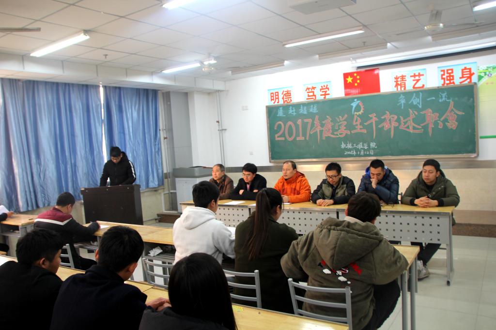 新时代、新起点、新征程,为进一步统一思想、明确目标,积累经验,展现学生干部积极向上的精神风貌,促进学生工作的顺利开展,2018年1月12日,机械工程学院组织召开学生干部述职会。学生团总支、学生会及以上班级学生干部100余人参加,团总支书记、学工办主任徐军纪及全体辅导员出席了本次会议。