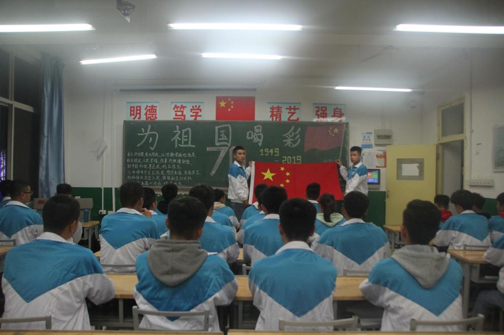 大一、大二共计36个班级1400余名学生参加了此次主题班会。各班以“为祖国喝彩”为主题,通过图片、文字、歌曲、诗朗诵、宣誓等方式对祖国70年来波澜壮阔的伟大事迹进行回顾和介绍,通过对70年风雨历程的前后对比让同学们认识到中国共产党带领全国各族人民努力奋斗的艰辛历程和辉煌成就,激发了同学们的爱国热情,使同学们倍加珍惜现在来之不易的和平生活,从内心深处对祖国当前取得的伟大成就感到骄傲和自豪。