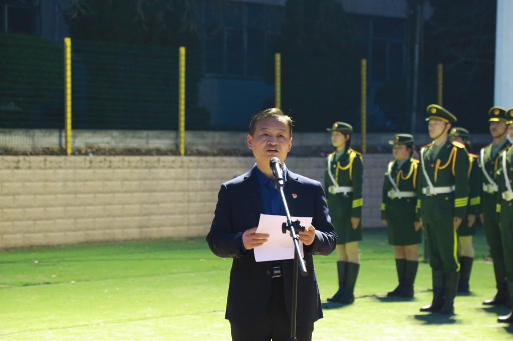 新春伊始、万象更新,在清晨第一缕阳光的沐浴下,本学期第一次“国旗下的成长”主题教育活动于2月20日早晨在操场升旗台下隆重举行,此次活动的主题为“践行二十大,青年当有为”。党委副书记贺天柱、学工部部长郝军、渭城校区各二级学院党总支书记、二级学院学工办主任、机械工程学院全体辅导员及教师代表、团学联学生代表、二级学院学生代表等共700余人参加本次主题教育活动。