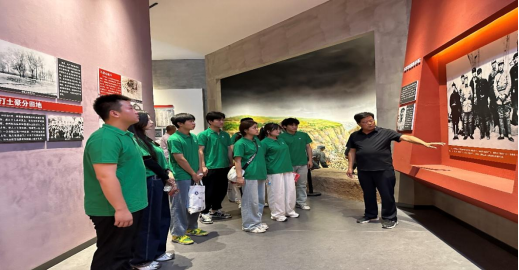 蝉鸣寰宇,绿意盎然。上午,实践团在桃渠塬村村委会书记王联锋的带领下,参观了桃渠塬革命史陈列室,映入眼帘的是庄重雄伟的人民英雄壁画雕像,向队员们讲述了解放战争时期,艰苦卓绝的革命奋斗故事。从1927年淳化县建立第一个中共组织,到1949年全境解放,这里曾是陕甘边革命根据地和陕甘宁边区关中分区的重要组成部分。刘志丹、习仲勋、邓小平等老一辈无产阶级革命家曾带领桃渠塬人民进行了一系列艰苦卓绝的革命斗争,为保卫边区、巩固抗日民族统一战线,支援全国人民的解放事业做出了重要贡献,在中共历史上写下了光辉的一页。桃渠塬革命遗址见证了老一辈革命家浴血奋战的光辉历史和丰功伟绩,队员们各个全神贯注,聚精会神,认真记录着每一个人动人心弦的故事,认真缅怀着每一位英勇奋斗的革命烈士。
