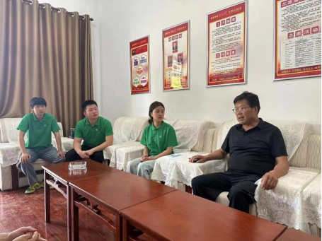 图为实践团成员与书记洽谈讨论关于乡村振兴脱贫致富话题