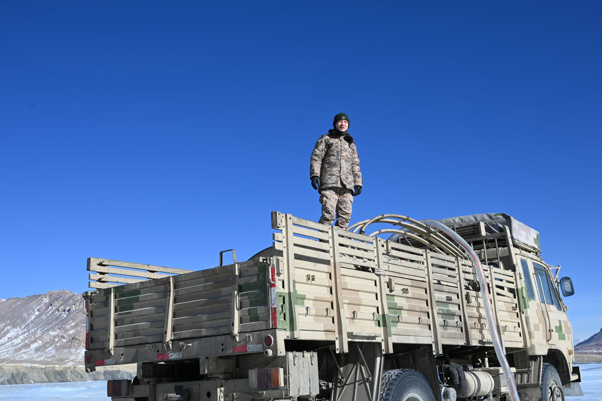 几个月后,上级配发的快速反应装备陆续列装部队,我经过了严格的训练考核成了一名突击车驾驶员,接到了从新藏线219国道进点位的任务,出发前,我给自己的军帽里也写下了“清澈的爱,只为中国”,我知道我走的路上有陈祥榕、陈红军、王焯冉、肖思远等无数烈士的鲜血,我要踏着先烈鲜血前进。库地达坂的急弯,一个接着一个,就像死神挥舞着的镰刀,阴森又危险。车轮碾过塌方的碎石,每前行一米都惊心动魄,稍有不慎,便是坠入万丈深渊的结局。在海拔5000米的麻扎达坂,手机没有一点信号,氧气稀薄得让人绝望,连呼吸都成了一种奢侈。突然,车轮陷进冰窟,我们只能徒手铲土垫轮,四周是呼啸的寒风,冰冷的冻土磨破了手套,渗出一片鲜红。暴风雪中,雨刮器疯狂地摆动,挡风玻璃上的冰晶折射出刺眼的白光。那一刻,我已做好了牺牲的准备,我也真切地明白了“边关”二字的重量。