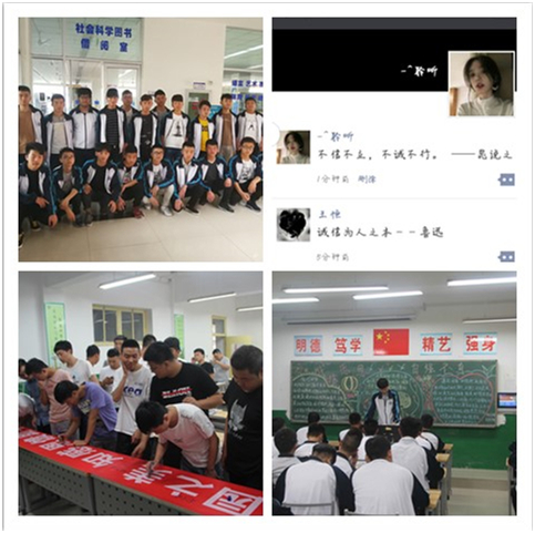 机械工程学院通过组织受资助学生定期赴图书馆公益劳动,开展“诚信感恩,自强不息”主题班会,签订“诚信大学生承诺书”,张贴诚信倡议书,举办诚信感恩签名仪式、“让诚信刷屏朋友圈”等活动,将诚信的成果进一步巩固,让诚信在学生脑海中留下深深的烙印。其中“让诚信刷屏朋友圈”活动,深受学生欢迎,同学们通过制作一条以诚信为主题的微信朋友圈,人人都成为了诚信宣传员。