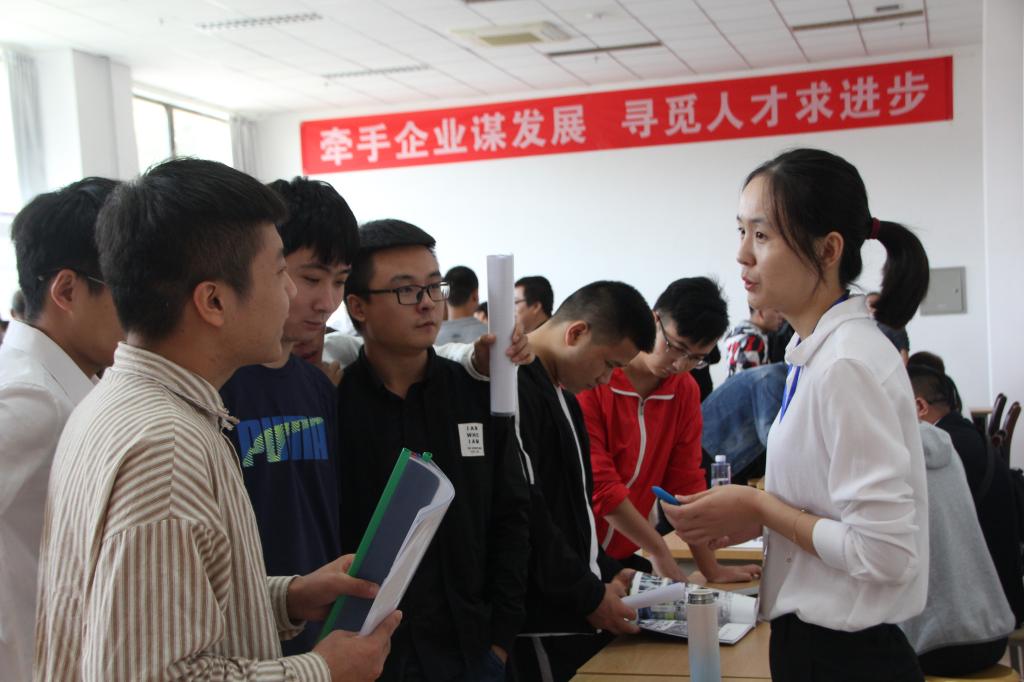 招聘会前,机械工程学院精心设计举办了招聘企业推介会、毕业生就业动员会及学生科技作品展示和专场校园宣讲,提升就业质量,创造多赢局面。学院领导亲临招聘现场感谢用人单位的到来,希望与用人单位实现“双赢”,形成良性合作关系,力争在教学、科研、产教融合等诸多领域密切合作,预祝用人单位招贤纳才,满裁而归。