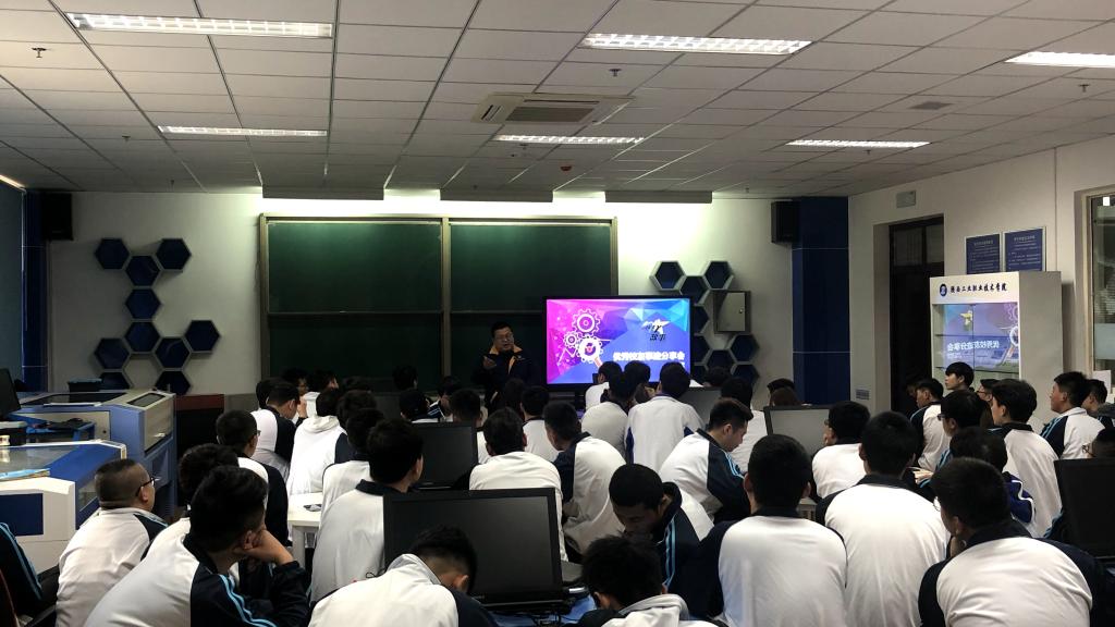严飞以自己和陕西工院的缘分作为切入点,依托自己的求学、工作经历,以《扎根职业教育 争做育人先锋》为题,勉励参会同学要拥有独立的思想,明确奋斗的方向,面对新环境,要学会快速适应,勇敢迎接挑战,在追寻梦想的道路上,不断超越自我,永不言弃!会上,嘉宾和现场的学生还开展了互动交流,活动在轻松愉快!