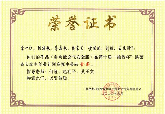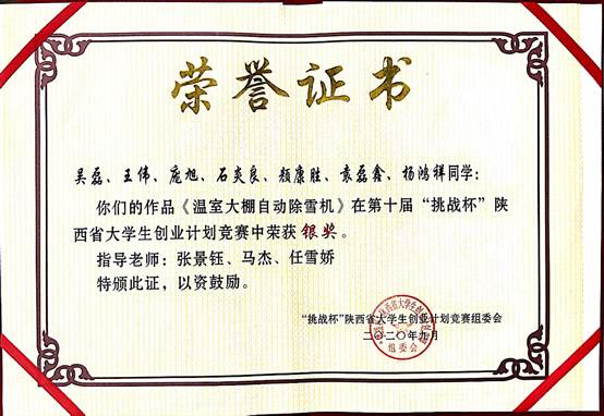 在此次比赛中,我院获得了4金1银1铜的好成绩,并以骄人的成绩夺得职业院校组最高荣誉——“挑战杯”。其中,机械工程学院何瑾、赵利平、吴玉文教师指导的作品“多功能充气安全服”获省级金奖;由张景钰、马杰、任雪娇老师指导的作品“温室大棚自动除雪机”摘得银奖。