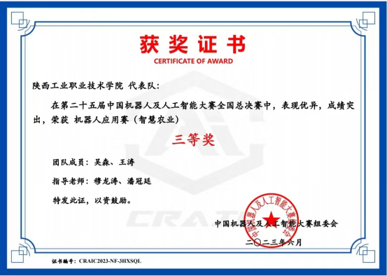 图3中国机器人与人工智能大赛陕西省赛二等奖、三等奖