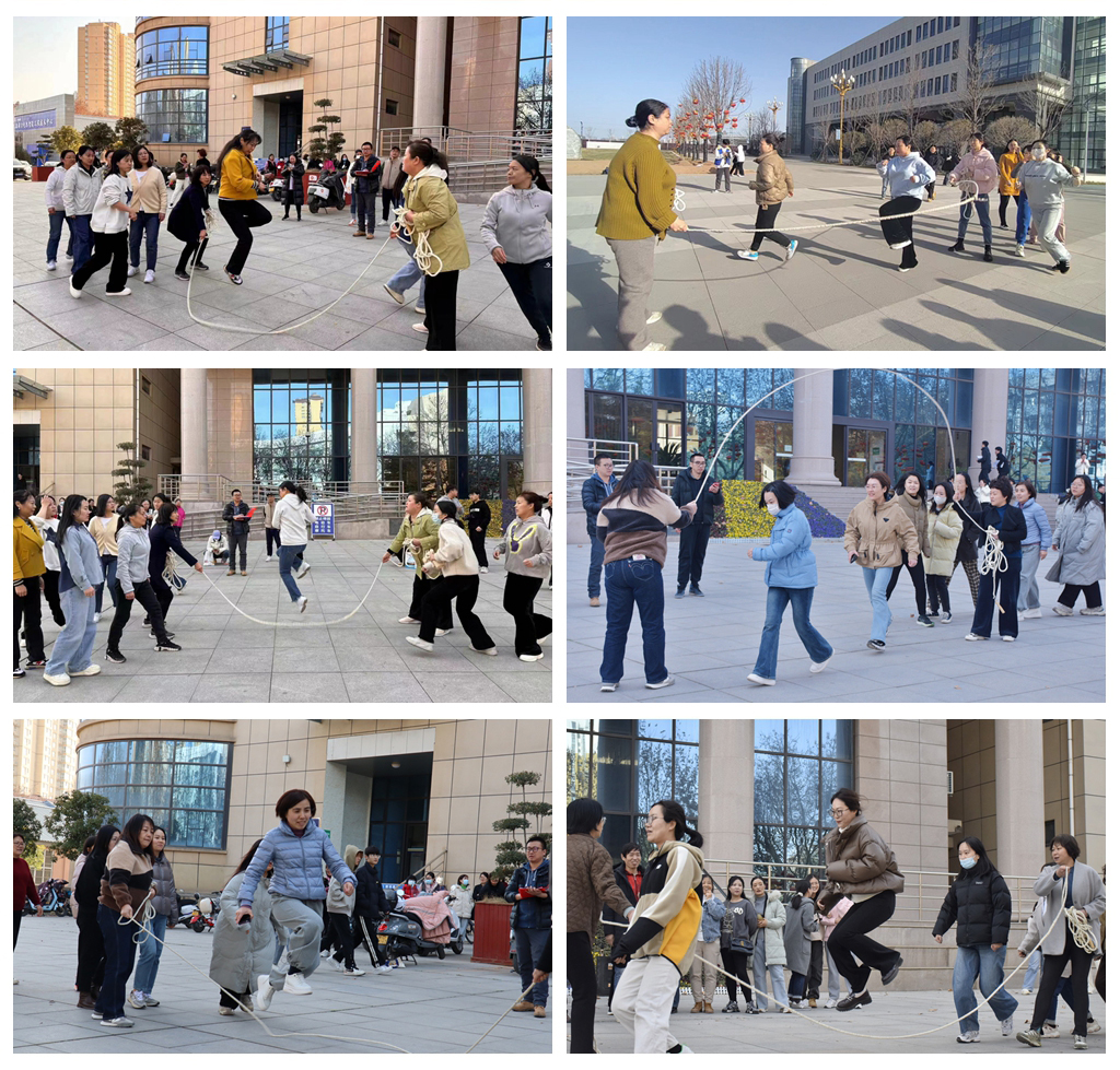 为庆祝“三八”国际妇女节,3月7日,由学校工会主办,机械工程学院分会和商贸流通学院分会承办的女教工集体跳绳比赛分别在渭城校区和经开校区成功举行。